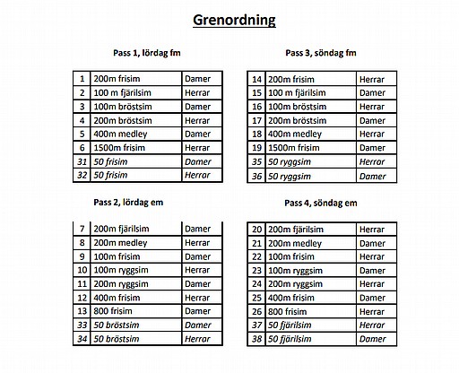 Tävlingstider: Pass 1: Lördag kl 10:00-14:00 (Insim 09:00-09:45)