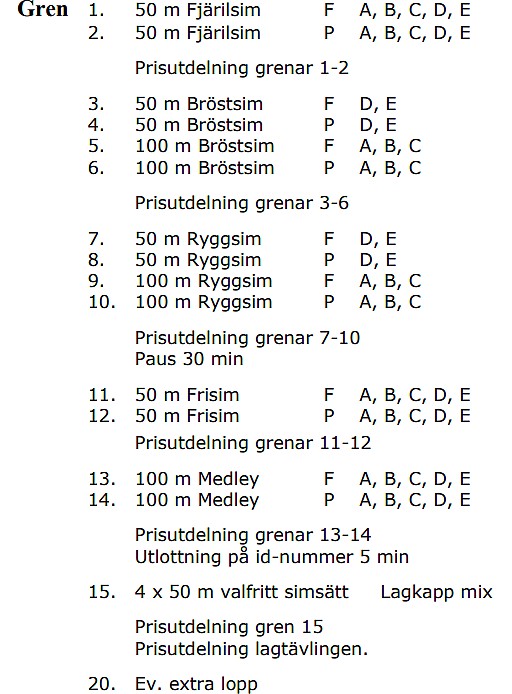 Insimning kl. 08:50 – 09:50 Tävlingsstart: kl. 10:00