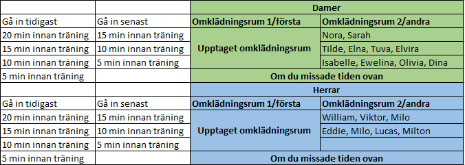 Nya träningstider