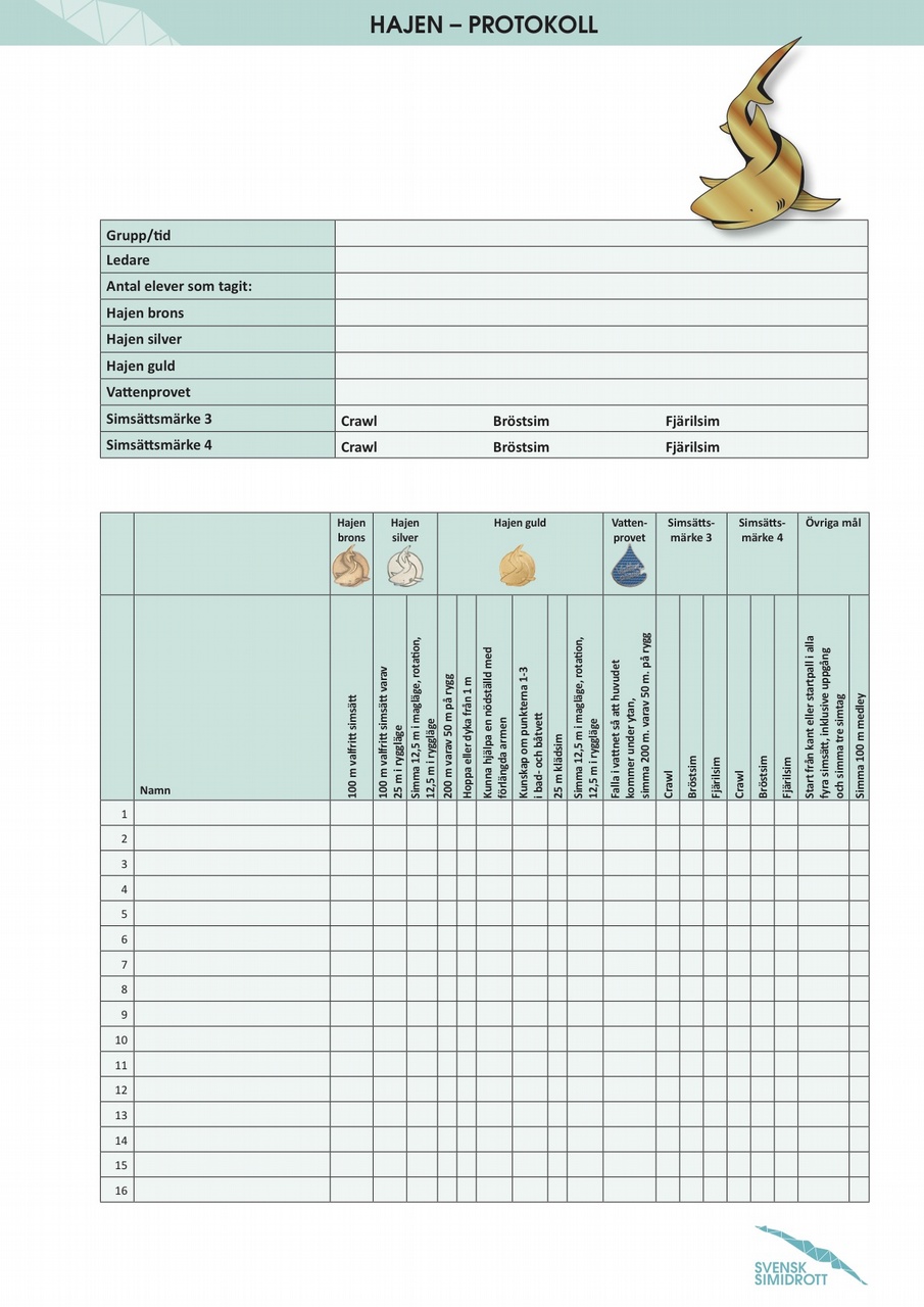 Vår simskola för barn bygger på simförbundets verksamhet som kallas Simlinjen. Simlinjen är upplagd i nivåer baserat på Simförbundets simmärken.