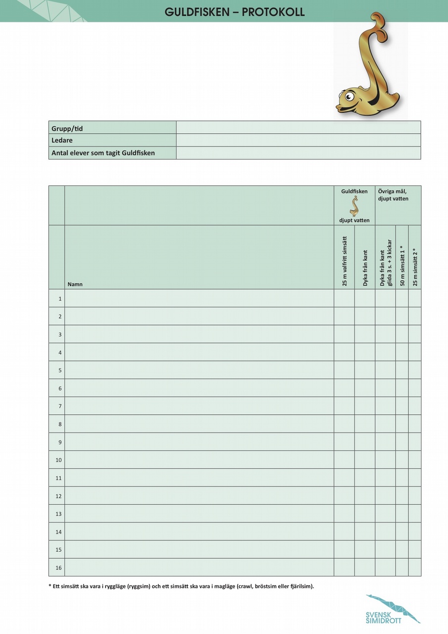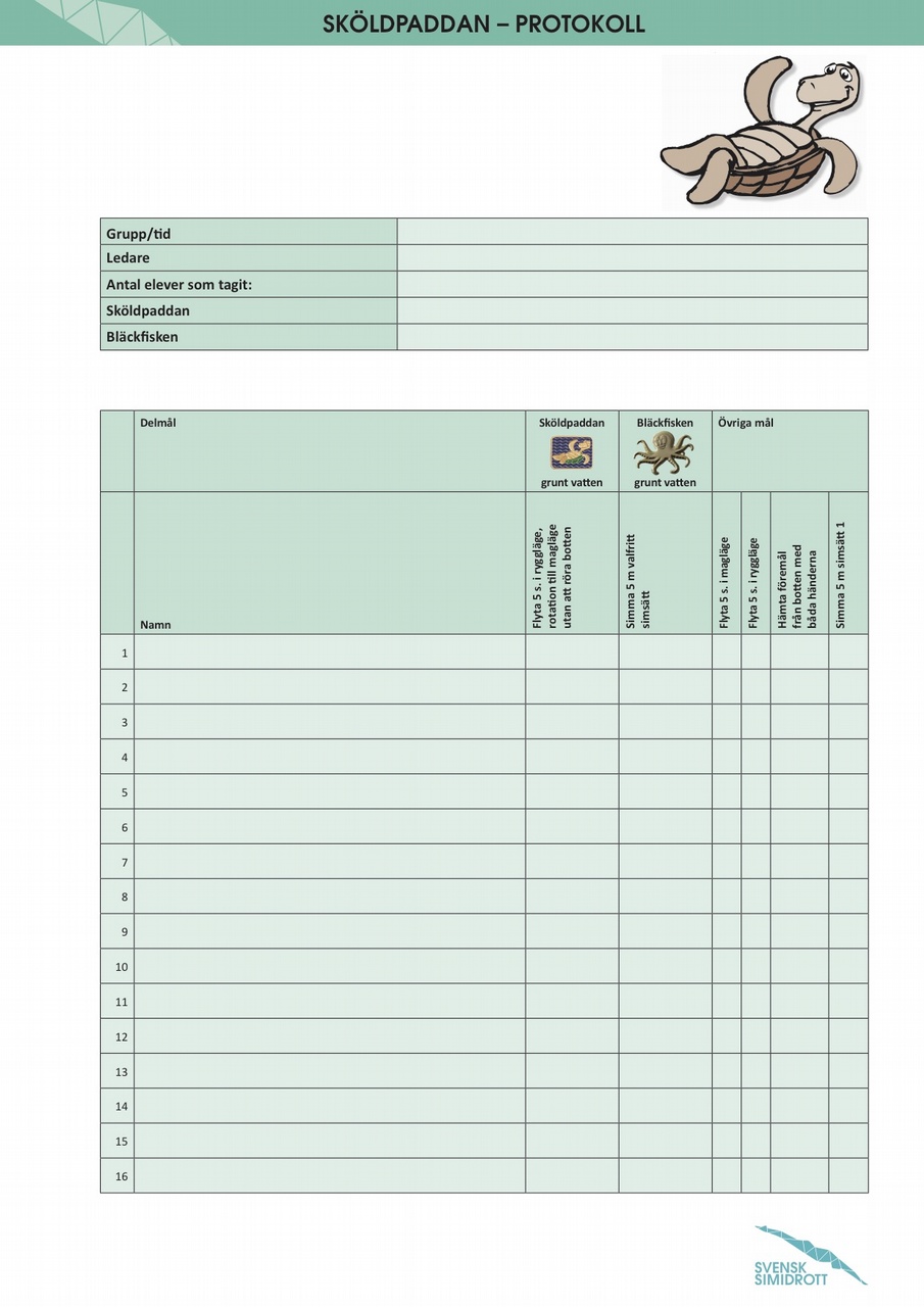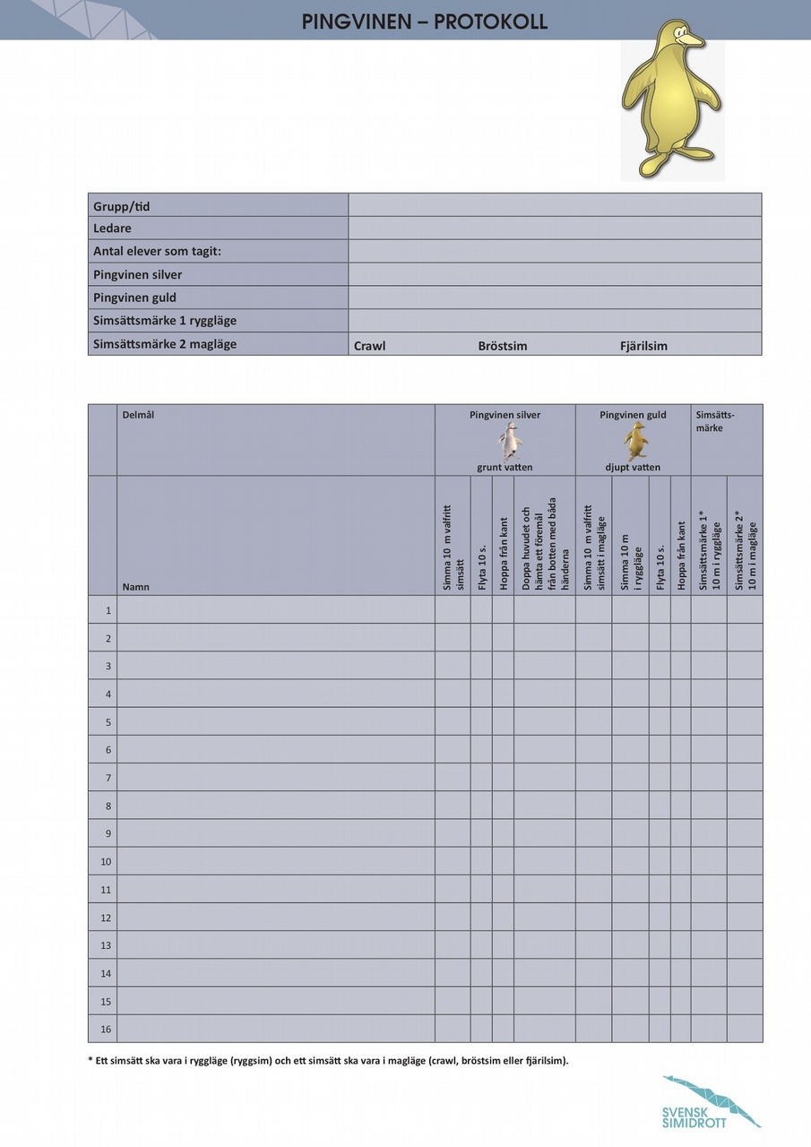 - Simma 10 m valfritt simsätt i magläge på djupt vatten
